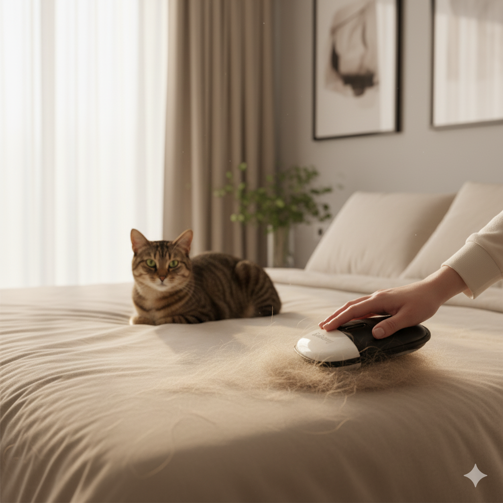 El pelo está en todas partes: sofá, coche, ropa… Los rodillos no sirven, el aspirador es incómodo. Resultado: pérdida de tiempo, vergüenza y estrés diario.